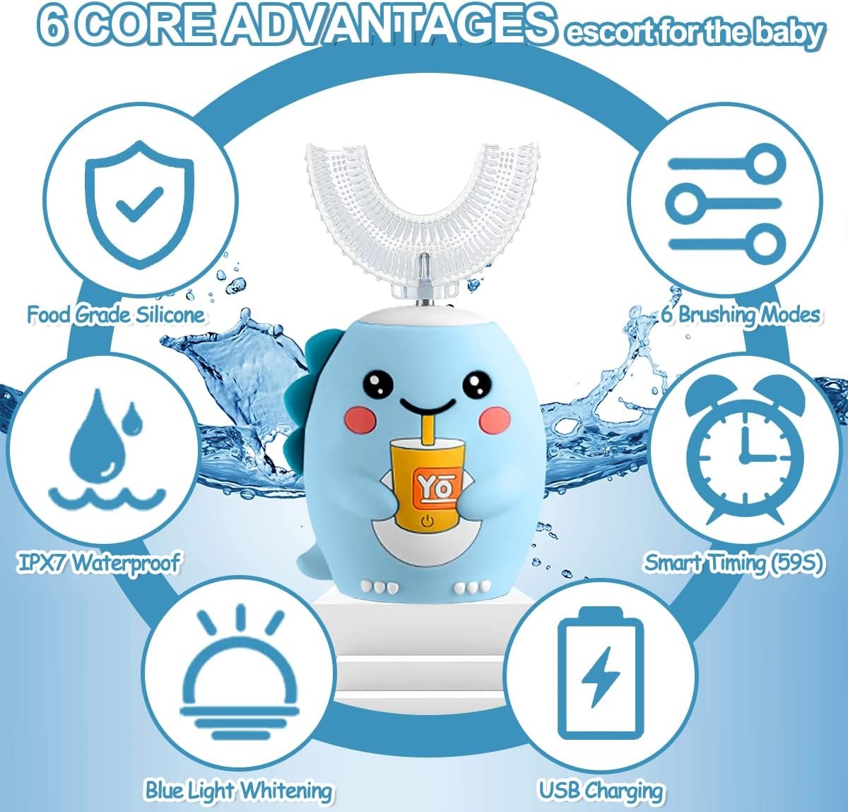 🌟 Fun and Engaging Design: Say goodbye to struggles over brushing teeth! Our U-shaped toothbrush makes brushing an enjoyable experience with its soft bristles and gentle vibrations. Kids love the vibrant colors and comfortable feel.